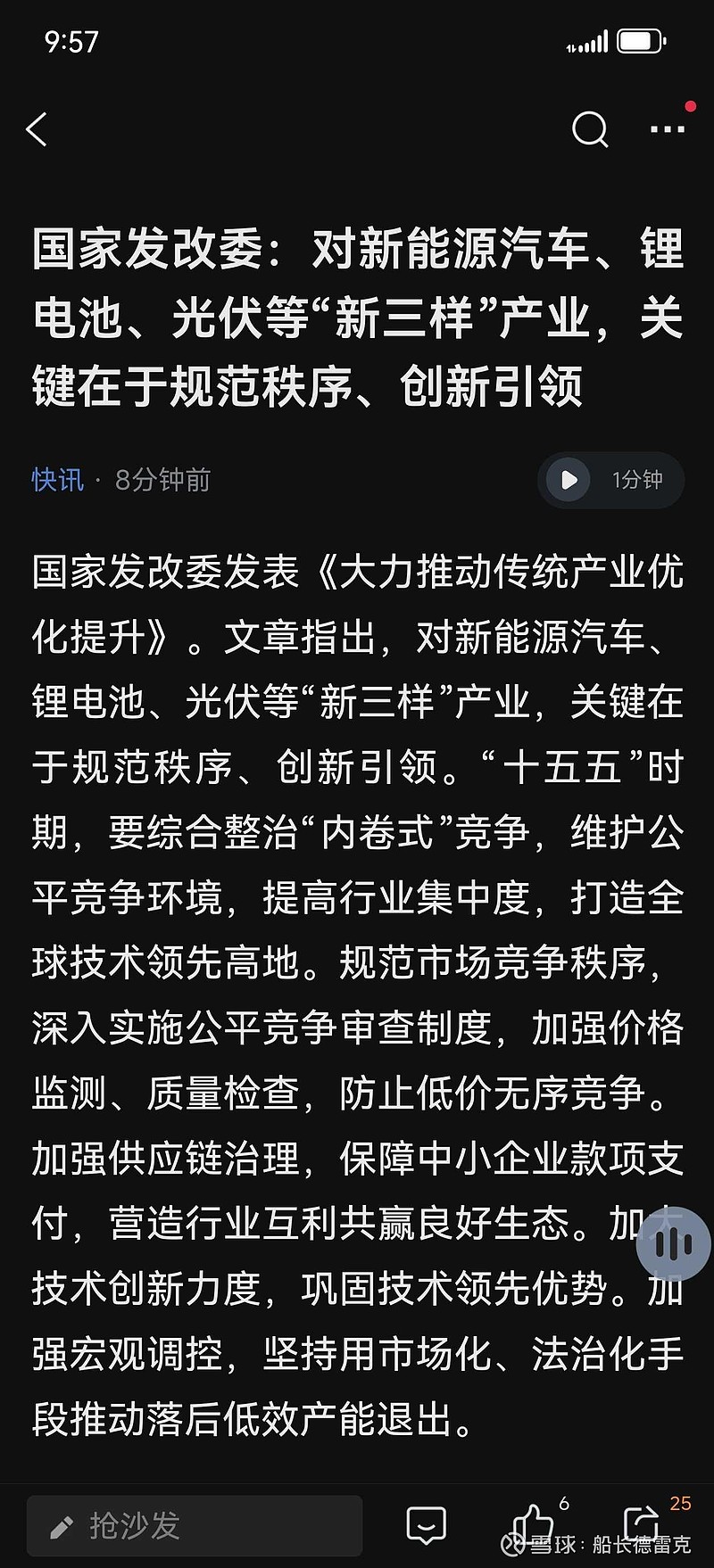 感觉是发改委的表态导致了比亚迪A股上涨,国家终于明牌十五五新能源车可以提升集中度了。我是比较多反驳国内市场份额18%上限论观点的,因为时代不一样了,不是合资主导的时代了,而且中国只有内部可以兼并,才能养出世界级断档领先的新能源巨头。25年是十四五收官之年,要检查作业,新能源车作为最核心的战略产业,是不能大量破产的,26年到了十五五的第一年,新能源车可以按照市场逻辑,提升集中度了$比亚迪(SZ002594)$