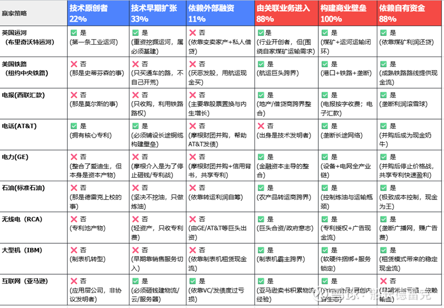 图11:过去科技革命最终赢家的策略分析—船长总结