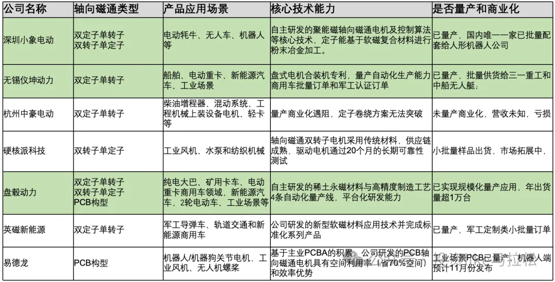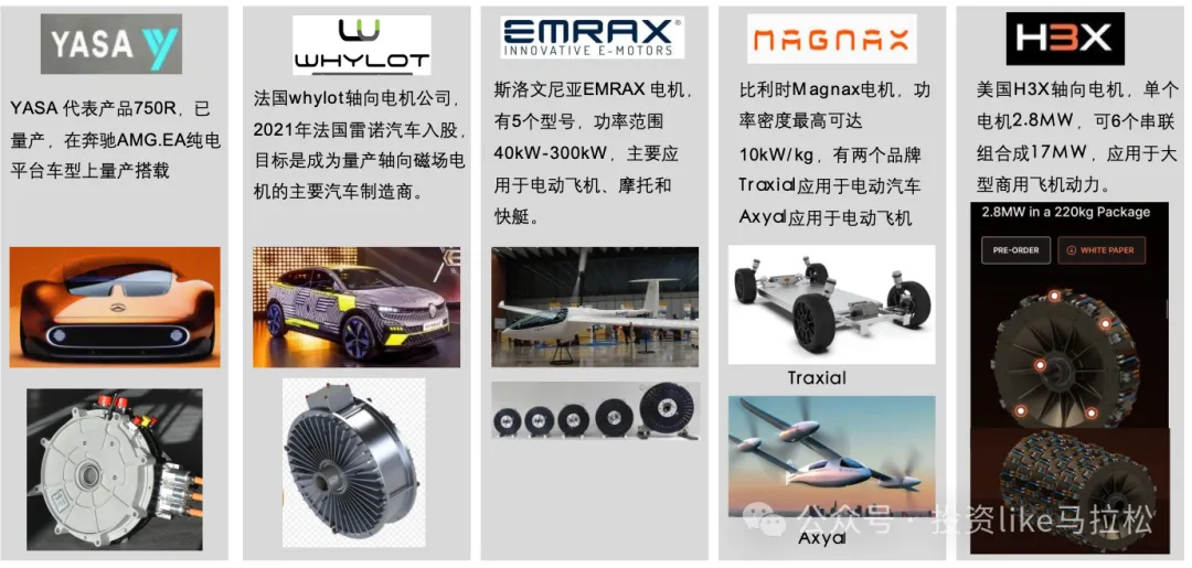 国外厂商:YASA、Whylot、EMRAX、Magnax、H3X、Phi-Power、Saietta、Beyond Motors、Evolito、Naxatra Labs、Miba等。