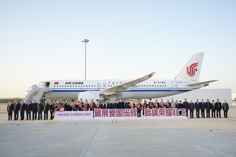 76年后的11月9日,国航C919飞机载旗飞行,重飞了“两航起义”的北飞航线,重温历史记忆。机上广播向旅客讲述了1949年“两航”员工在香港毅然起义、驾机北归的历史,也让这次飞行成为旅客们心中的珍贵记忆。