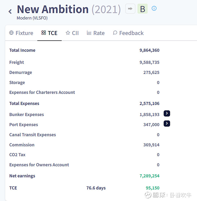 Actual TCE/day including idle days:航行实际每天净收入包括闲置等待时间 9.5万美元77天
