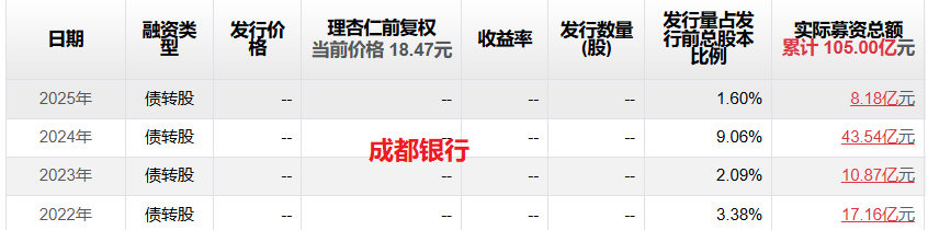 2019~2025,成都银行融资近80亿,一个断不了奶的孩子;招行则为零——完全靠自己赚钱实现内生性增长。