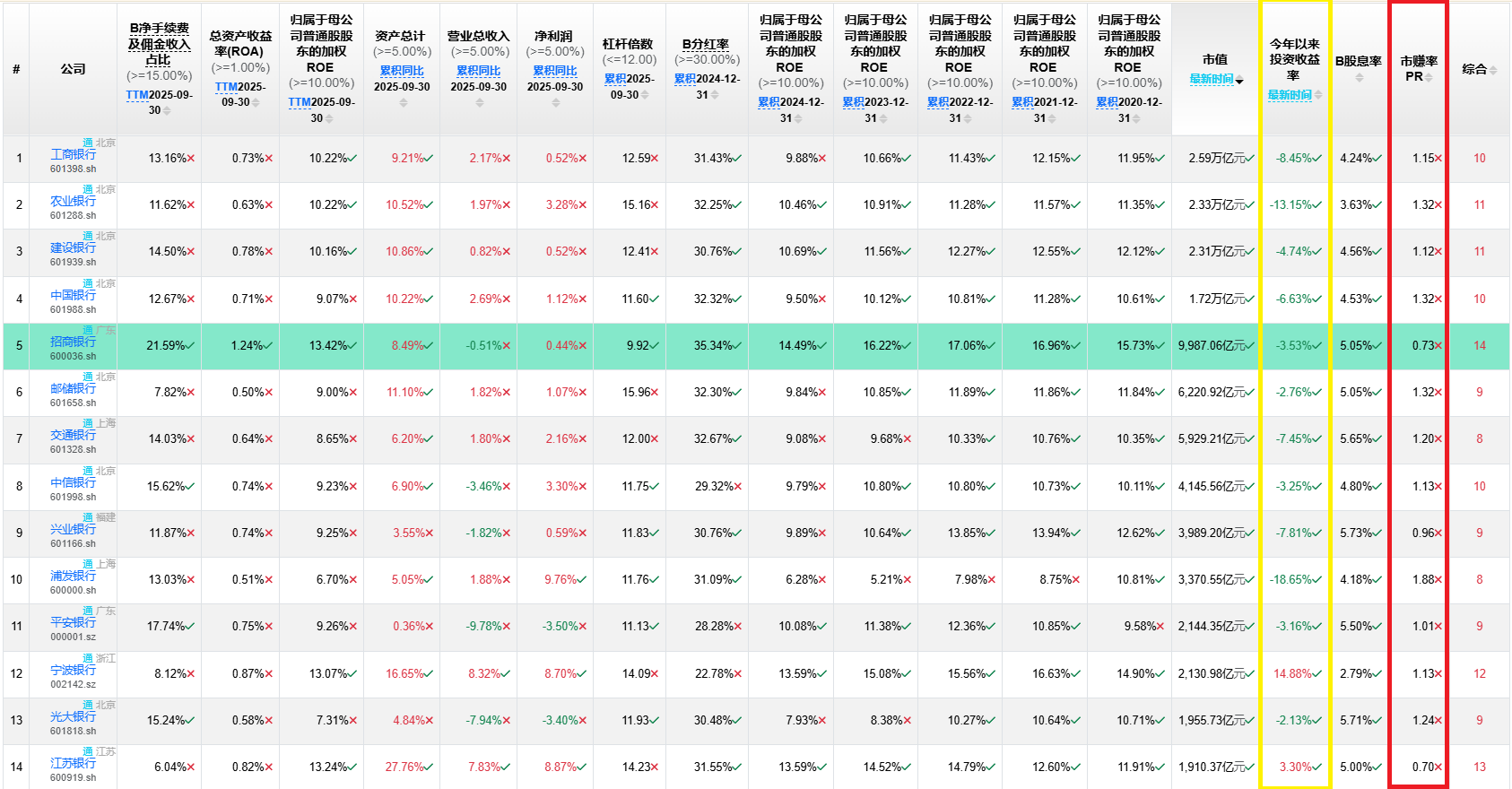 比如,从“今年以来投资收益率”来看,银行业大多数掉头向下。