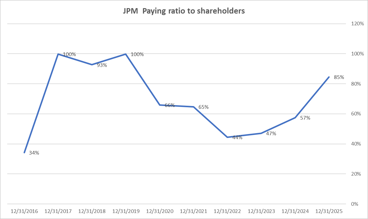近十年JPM的平均股东回报率为68%,为招行35%的2倍。按股息折现模型,JPM理应比招行贵一倍。
