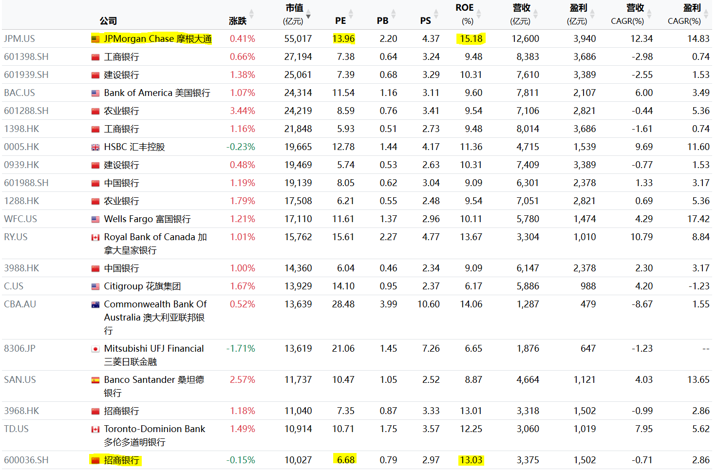 $招商银行(SH600036)$ $建设银行(SH601939)$ $摩根大通(JPM)$