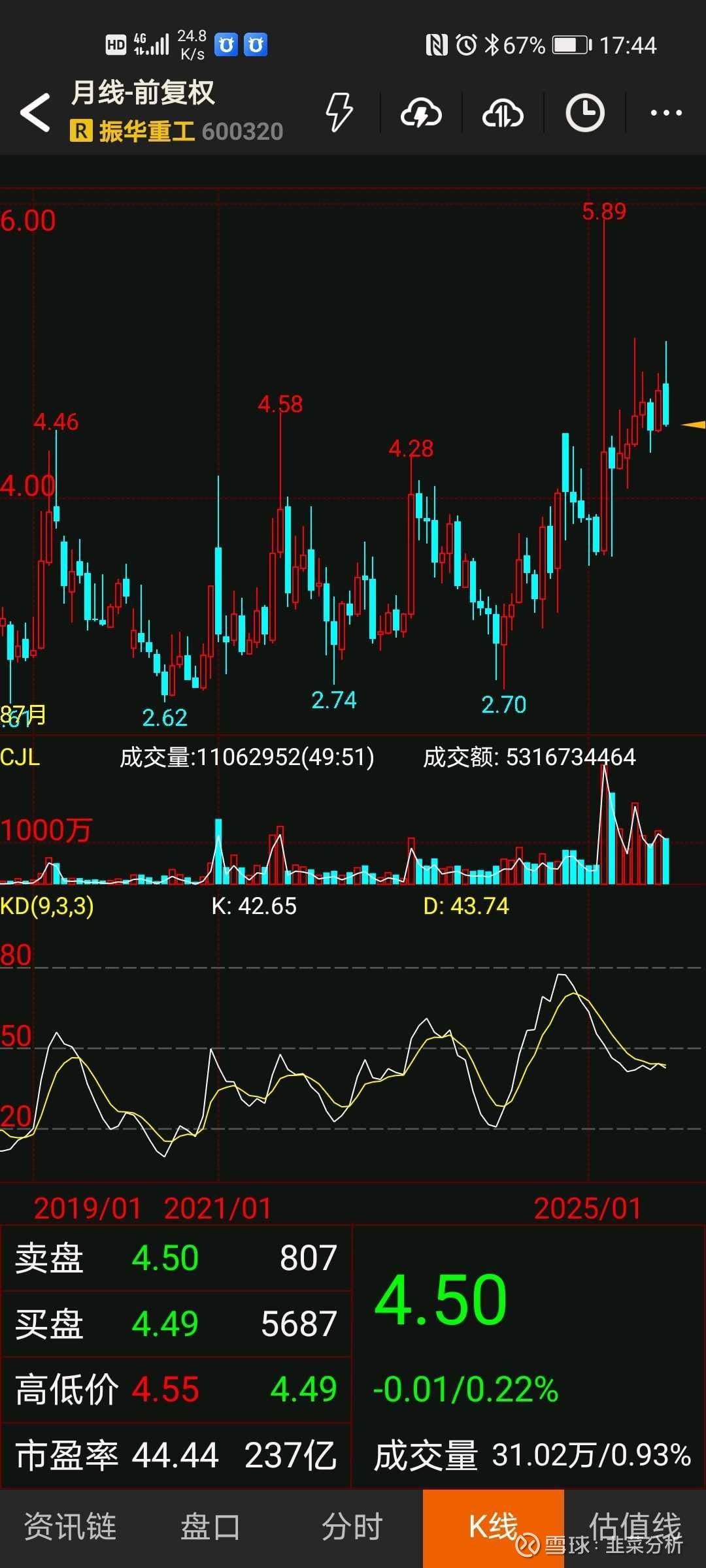 $振华重工(SH600320)$ 开盘4.51清仓了,整体收益75.5%,落袋为安。