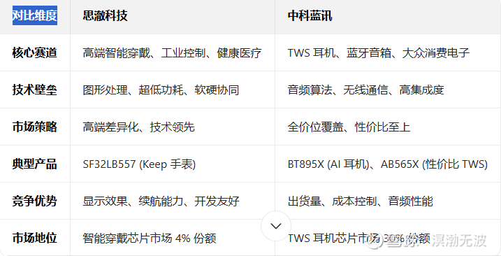 思澈科技与中科蓝讯虽同处无线通信芯片领域,但采取了截然不同的发展战略: