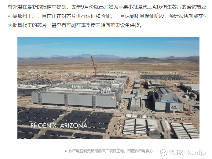 台积电位于亚利桑那州的在美晶圆厂项目目前包含三座工厂,其中首座专攻