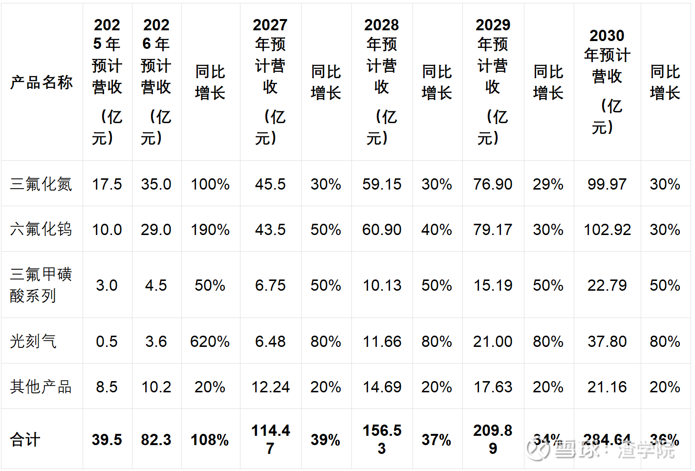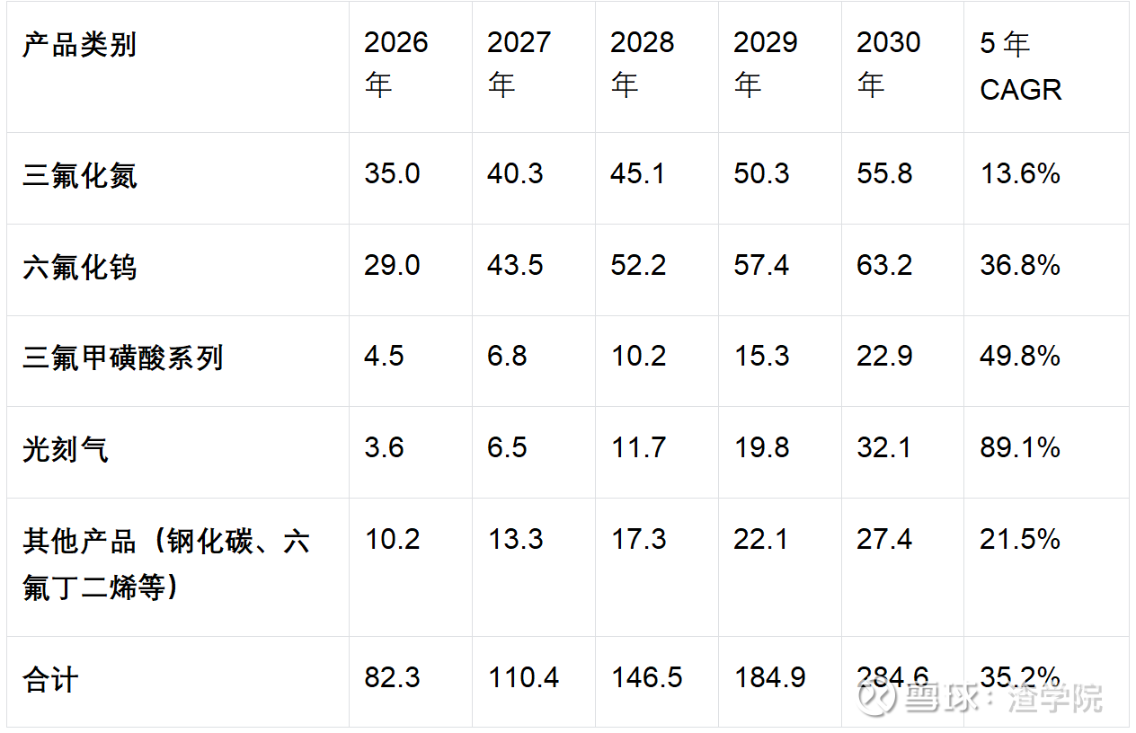 2026年:内蒙基地7500吨产能满产,总产能达2万吨,叠加日本关东电化3700吨产能停产带来的替代机遇,价格涨至30万元/吨,销量1.17万吨,营收翻倍至35亿元。
