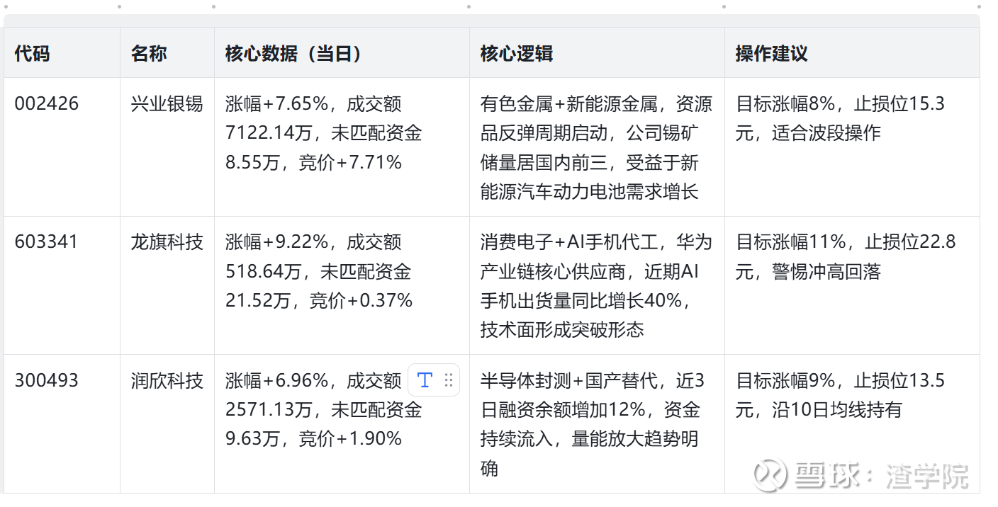 (渣学院短线突击团队实时跟踪盘面动态,若出现资金异动、题材降温等信号,将第一时间发布更新报告,敬请关注。)
