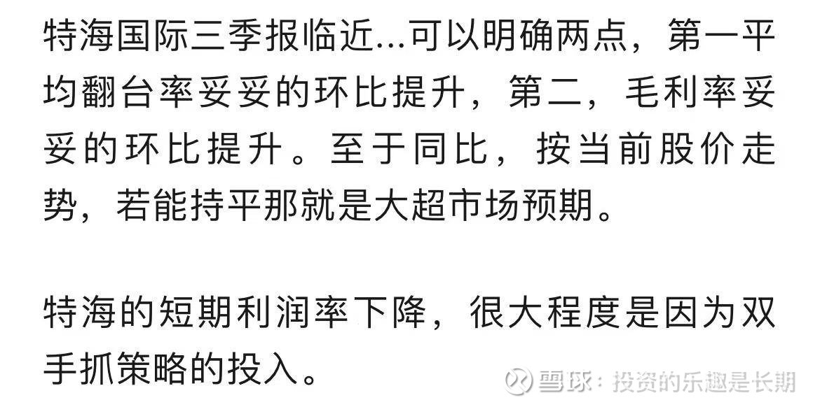 首先,多谢雪球DS肯定长期兄作为特海研究最深的达人。对此,我再解释一下,为何说特海三季报略超预期…