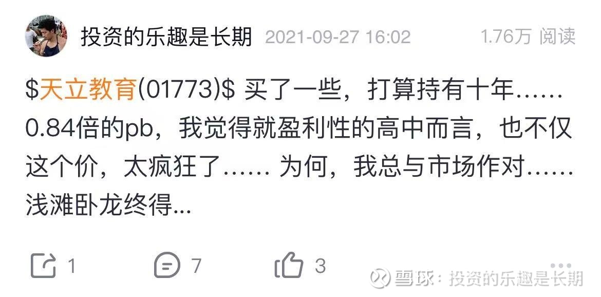 基于最简单的常识。由此,长期兄投资了比教培更刚需的私立学校天立教育。(同时我认为教培,也一样会长期存在)