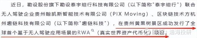 更让人意想不到的是,这家扎根传统基建的企业,还在悄悄布局无人车赛道,并且率先推出了全球首个基于无人驾驶应用场景的RWA(真实世界资产代币化)项目。