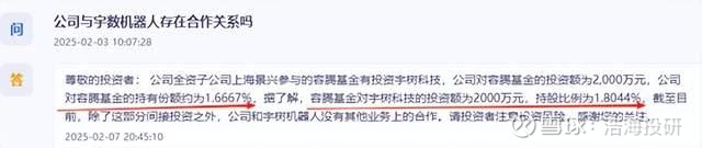据公开信息介绍,景兴纸业对容腾基金的投资额为2,000万元,对容腾基金的持有份额约为1.6667%。容腾基金对宇树科技的投资额也是2000万元,持股比例为1.8044%。