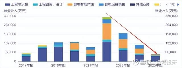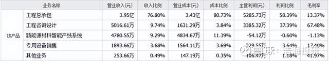 从2025年上半年收入结构来看,百利科技营收主要来源于工程总承包、工程设计咨询、新能源材料智能产线系统、专用设备销售。其中,工程总承包收入占总营收76.80%。