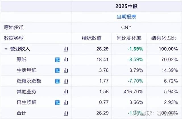 景兴纸业的核心业务始终围绕纸展开,主要从事工业包装原纸、纸箱纸板、各类生活用纸以及再生浆板的生产和销售。其中,重点聚焦运输包装原纸领域,主要产品包括牛皮箱板纸和高强度瓦楞原纸等。2025年上半年,原纸业务实现收入18.41亿,占总营收70%。