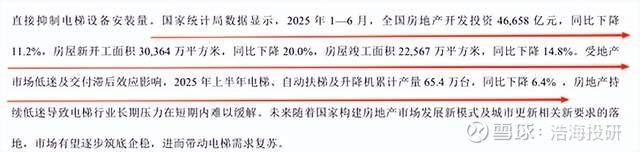 国家统计局数据显示,2025年1-6月,全国房地产开发投资46,658亿元,同比下降11.2%,房屋新开工面积30,364万平方米,同比下降20.0%,房屋竣工面积22,567万平方米,同比下降14.8%。受地产市场低迷及交付滞后效应影响,2025年上半年电梯、自动扶梯及升降机累计产量65.4万台,同比下降6.4%。