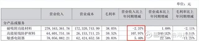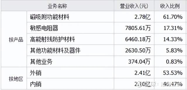 至于新莱福,以功能材料为核心,构建了“吸附功能材料+电子陶瓷元件+辐射防护材料”三大业务板块,但其中除了辐射防护材料,另外两大业务都表现出了不同程度的疲态。
