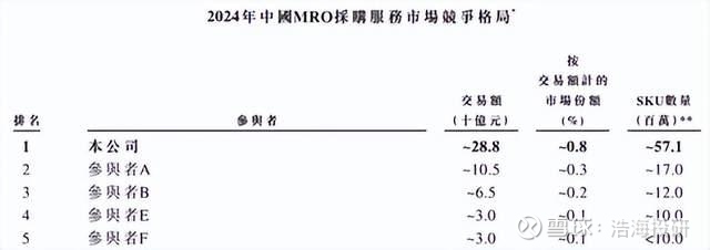 按2024年交易额算,它在中国工业供应链技术服务市场排名第一,市场份额4.1%,在MRO(非生产性物料)采购这个细分赛道,体量几乎是第二名的3倍,说它是隐形冠军都低估了,这分明是显形霸主。