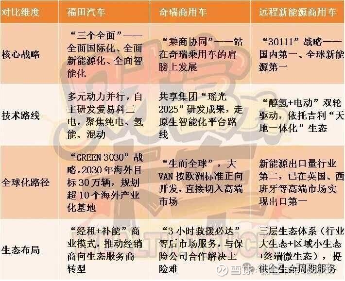 作为国企,福田汽车的转型是“五年规划”式的稳步推进。这五年它需要按自己的节奏完成大象转身。奇瑞商用车的百万目标一半系于海外。海外政策的变化,关系着目标实现。吉利远程押注醇氢路线能被纳入国家新能源体系,远程的生态护城河才能真正成型。如果政策不认,它的醇氢布局就是沉没成本,生态优势将大打折扣。