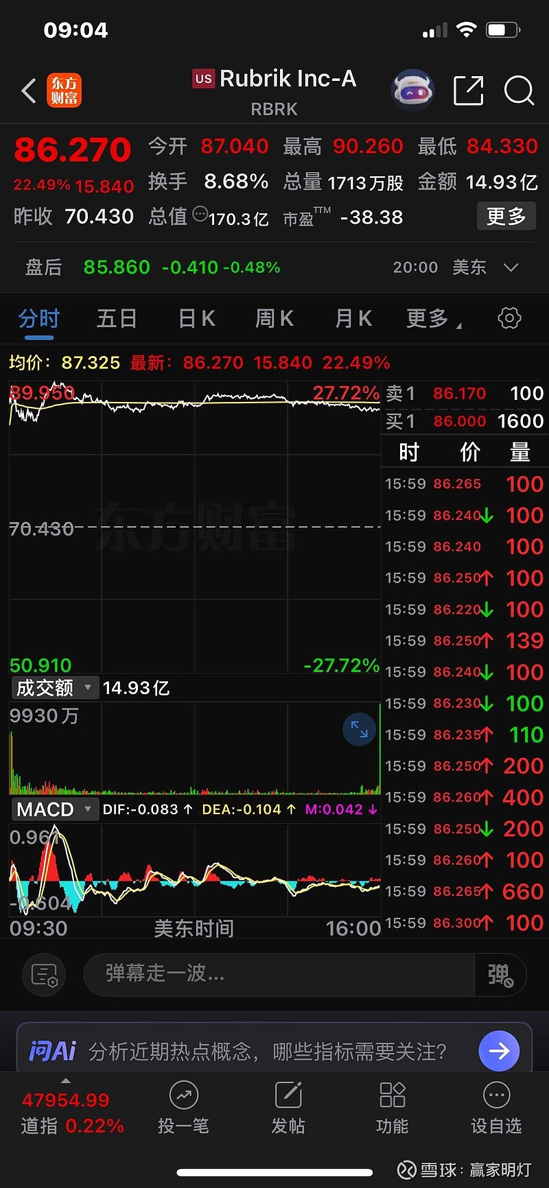美国的数据备份公司RBRK大涨22%,市值达到了170亿美元。A股中唯一可对标的公司