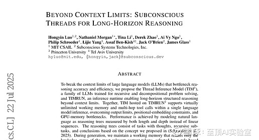 Q2:普通开发者能使用TIM系统吗?使用门槛高不高? A:相对简单。与传统需要复杂多智能体框架的系统不同,TIM只需要提供工具描述和简单系统消息就能工作。开发者无需设计复杂的上下文管理逻辑,系统会自动处理记忆管理和工具调用。目前代码已在GitHub开源(github.com/subconscious-systems/TIMRUN),技术门槛大大降低。