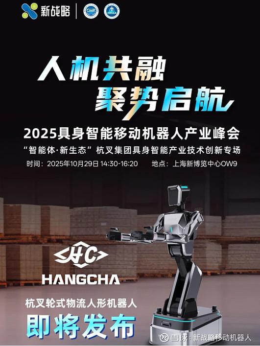与杭叉的动作相呼应,10月29日,2025具身智能移动机器人产业峰会将在上海新国际博览中心隆重举行。