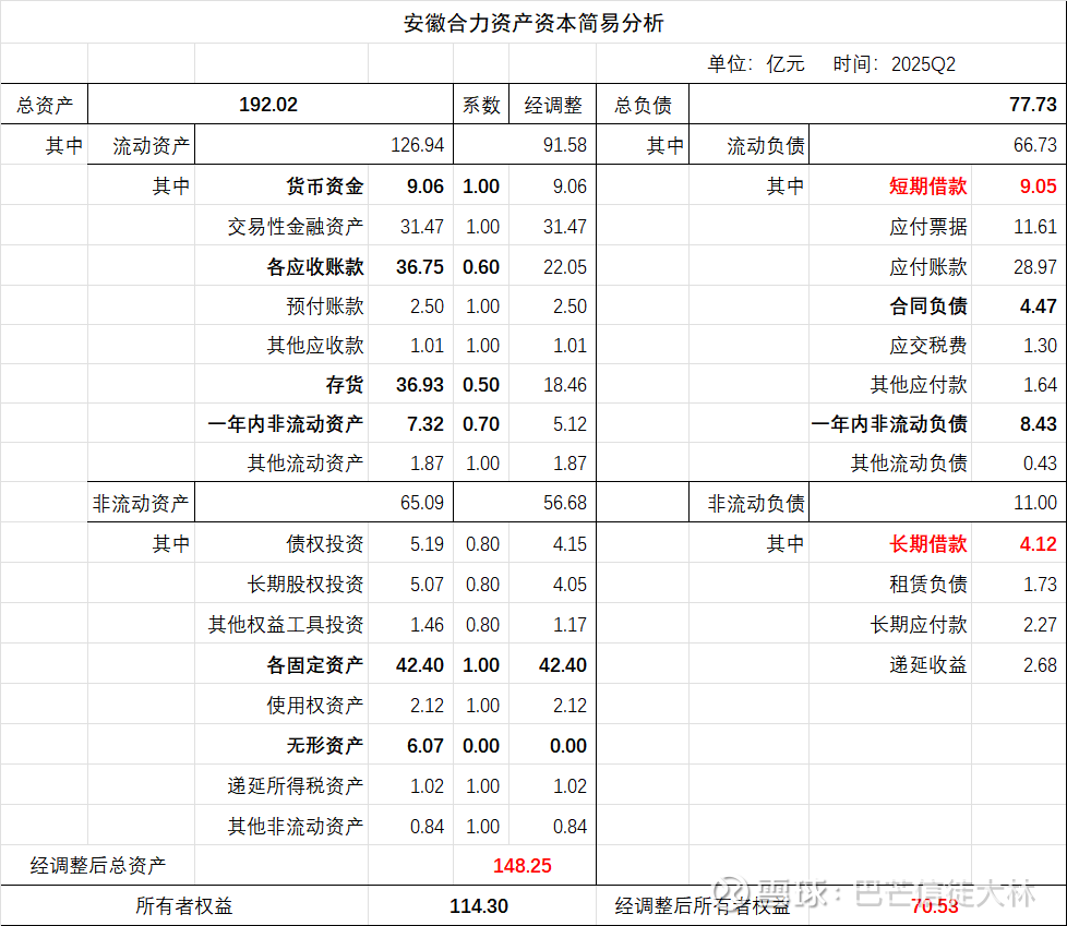 最后整理发布一个最新的资产负债简表,供诸位球友们讨论交流。跟去年《安徽合力投资价值分析》相比,财报上的改善提升也是明显不如杭叉集团,不怪杭叉涨幅更好。