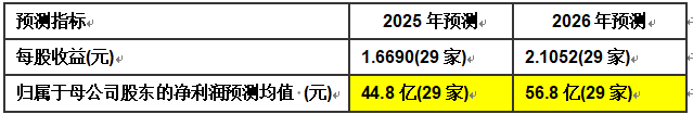 截止当前,29家卖方预计26年公司净利润均值56.8亿