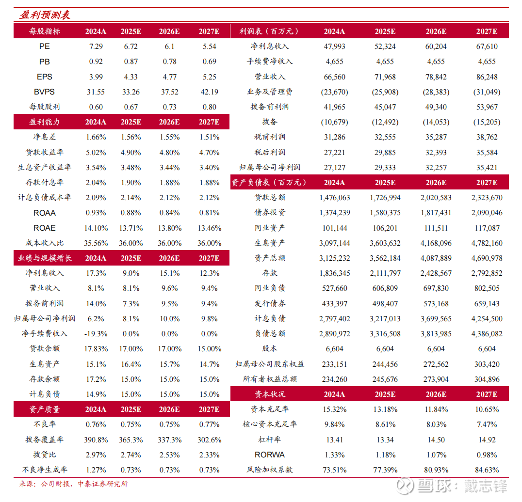 根据公司已出业绩快报,我们调整盈利预测,预计25E-27E归母净利润为293亿、323亿、354亿(前值为286亿、305亿、329亿)。
