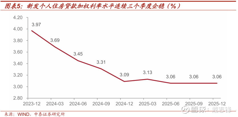 零售:预计零售新发利率将趋于稳定。一方面,4Q25按揭贷款新发利率3.06%,连续三个季度维持在该水平。另一方面,2025年4月以来零售端消费贷等非按揭利率不得低于3%左右,该指引仍然生效。