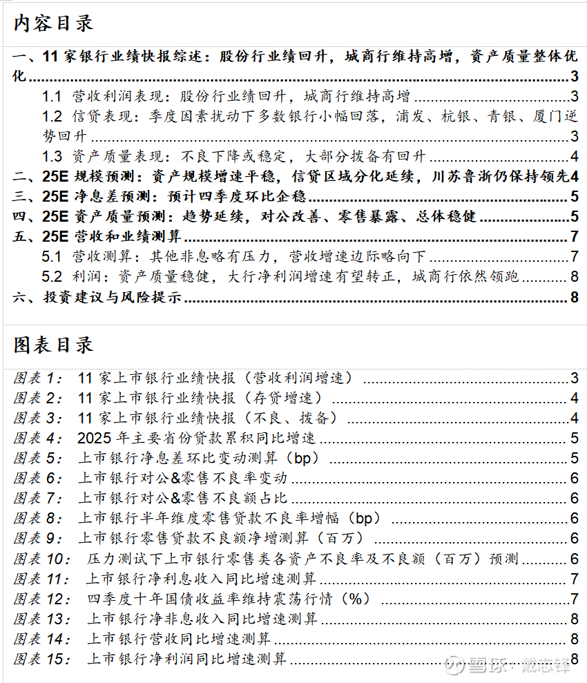 证券研究报告:前瞻 | 上市银行2025年年报:业绩增速有望稳中向好,资产质量持续优化