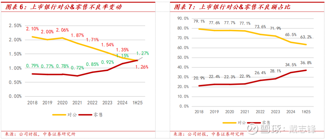 对公:得益于政信资产支撑、地产风险暴露峰值已过,对公不良率持续下降。