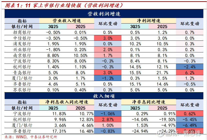 截至2026年2月7日,11家上市银行披露业绩快报,包括4家股份行、6家城商行、1家农商行。
