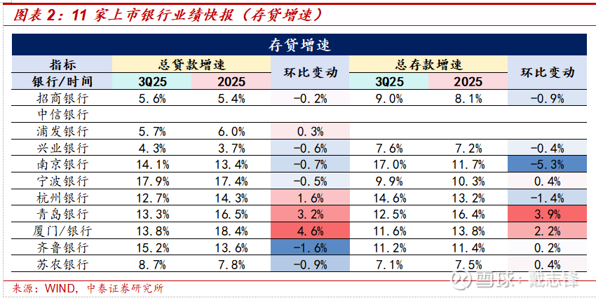 贷款同比增速来看:季度因素扰动下多数银行小幅回落,浦发、杭银、青银、厦门逆势回升,增速环比分别提升0.3、1.6、3.2、4.6个点,厦门增速抬升最为显著。