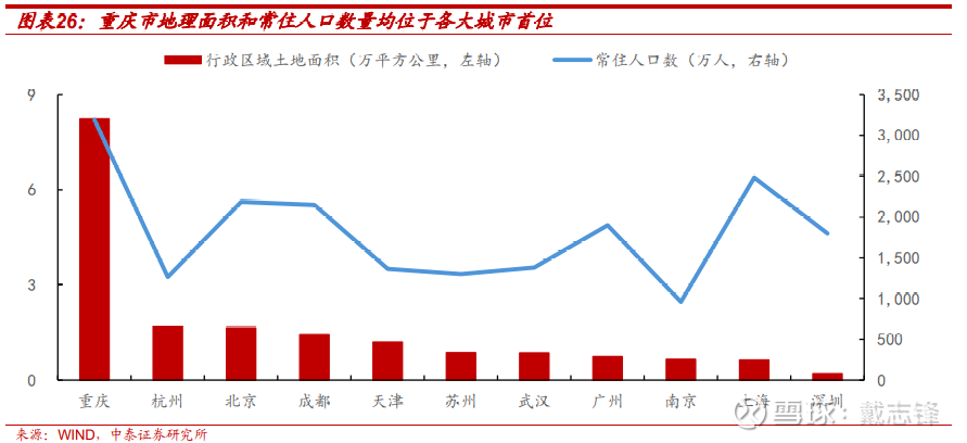 重庆市人口数量、行政面积位居各城市首位,同时重视场景经济如商圈建设,为“场景圈动”提供环境基础。