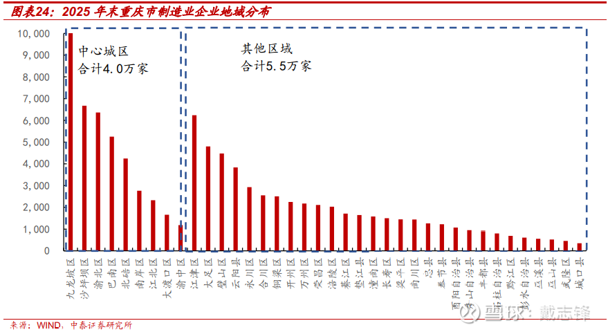 县域地区制造业企业数量占比超过一半,下沉式网点更容易更易触达相关产业。截至2025年末,重庆市制造业相关企业共有9.5万家(包括法人公司和其他省份制造业企业分公司),其中中心九城区合计有4.0万家,县域地区合计5.5万家,占比为57.4%,同时也包含如涪陵榨菜(涪陵区)、太极集团(涪陵区)、望变电器(长寿区)、长城汽车重庆分公司(永川区)、鸿路钢构(南川区)、重庆雅迪科技(永川区)等规模较大的制造业企业。因此,分布更广、更下沉的网点分布有助于渝农商行触达更多的县域地区的制造业企业,助力推动“产业链动”落地。