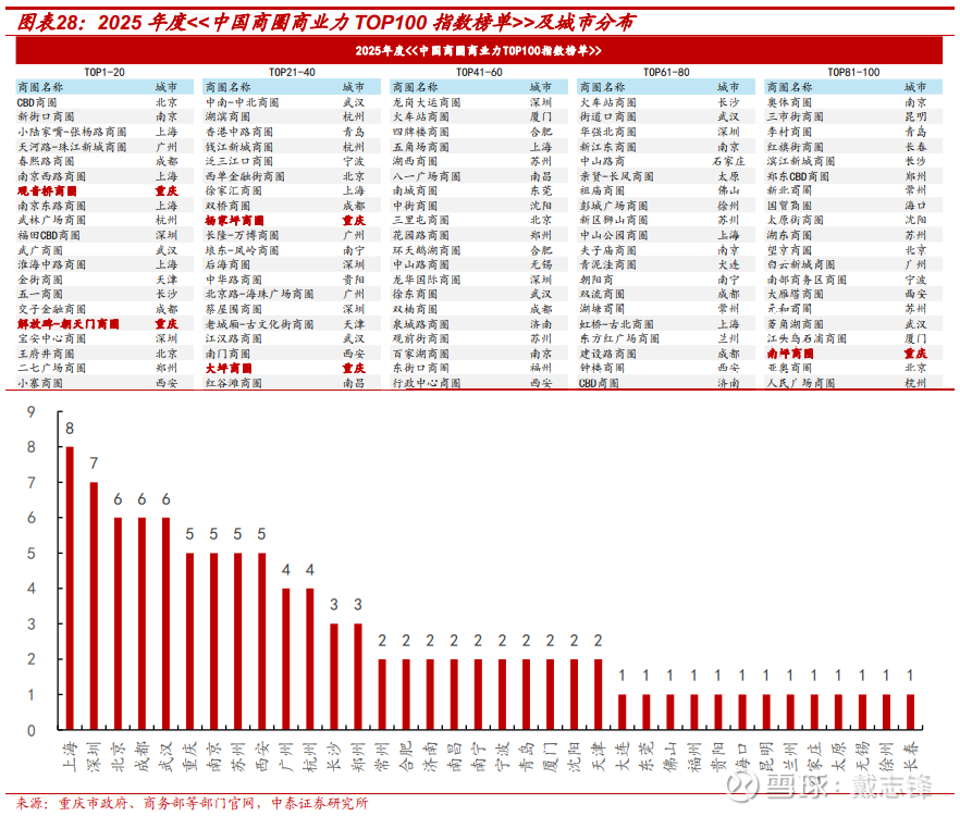 现状:2025年12月5日,《2025年度中国商圈商业力指数榜单》在深圳发布,综合考虑商业多样性、首发经济、科技体验、文旅融合等维度,重庆市共有5个商圈位列其中,排在上榜城市中第6位,体现出当地商圈综合实力较强。
