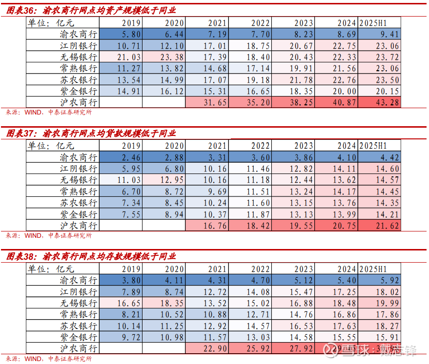 三年发展规划清晰,助力推动“三大新动能”落地,同时也有助于银行解决自身网点均资产、负债规模相对较小的问题。截至1H25银行网点均资产规模、均信贷规模、均存款规模分别为9.4亿元、4.4亿元、5.9亿元,均明显低于其他上市农商行,在优质外部环境及内部调整下,叠加“新动能”落地,未来存在较大发展空间。