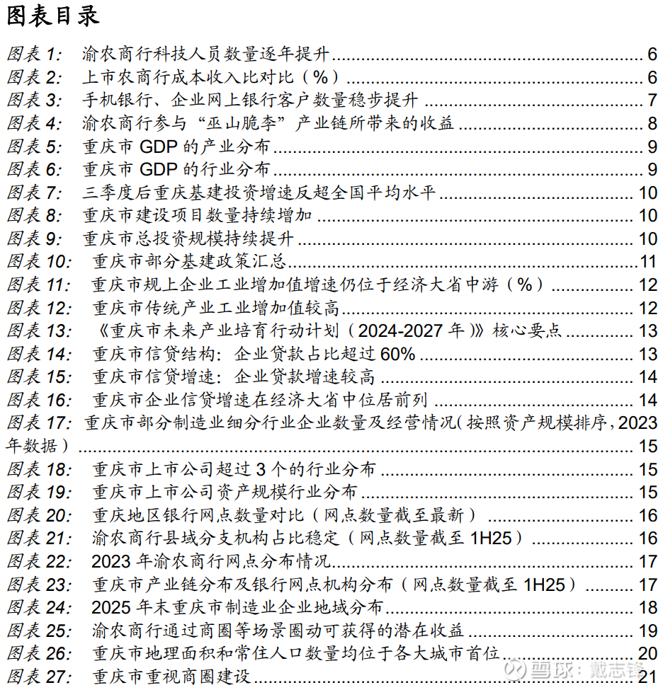 我们对渝农商行进行持续深度跟踪,相关深度报告详见《重庆区域专题 | 经济景气度提升,个股基本面向好》《深度推荐 | 渝农商行:深耕区域带来低成本和低风险偏好,高股息标的》。