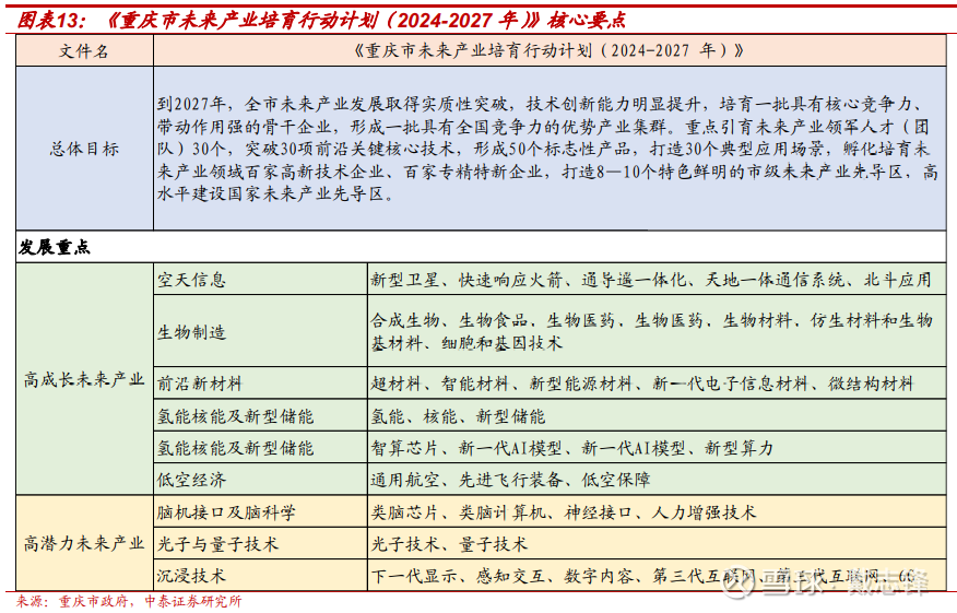 未来产业规划:2024年9月,重庆市政府印发《重庆市未来产业培育行动计划(2024-2027年)》核心要点,围绕“33618”现代制造业集群体系进行前瞻布局未来产业,其中主要囊括27个高成长产业及12个高潜力产业,预计到2027年打造8至10个特色鲜明的市级未来产业先导区,高水平建设国家未来产业先导区。优势传统产业+布局未来产业为重庆市产业发展带来较大空间,同时也为当地金融机构扩张发展带来更多需求。