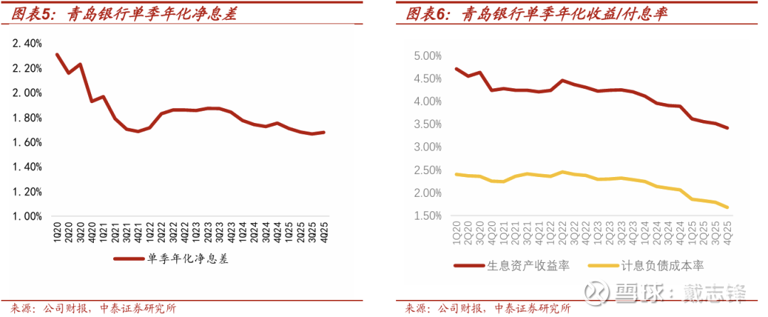 4Q25单季年化净息差环比+1bp至1.68%:单季年化资产收益率环比下降10bp至3.42%,计息负债付息率环比下降11bp至1.68%。负债端成本改善幅度略好于资产端。