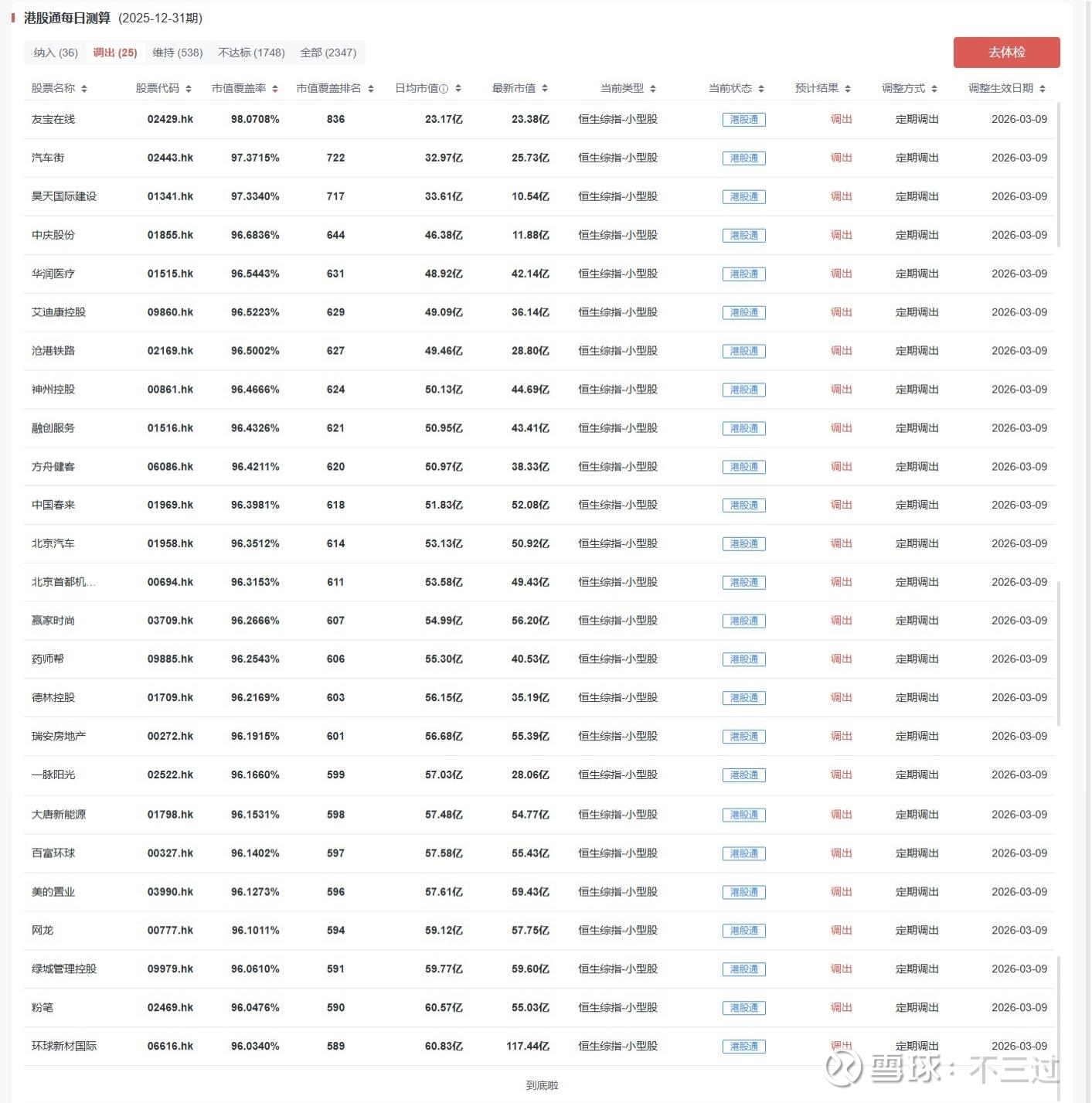 看了潜在调入和调出名单,港股通这个出/入机制僵硬且不够完善,如解禁前盘子小拉高入通(解禁后参股资本套利离场市值退通),大股东和核心控股东持股比例≦75%时(公众股≦25%时,很易流动性不达标),>96%日均市值的末位淘汰制(配股做大市值;或未随市场实际情况进行调节)……!