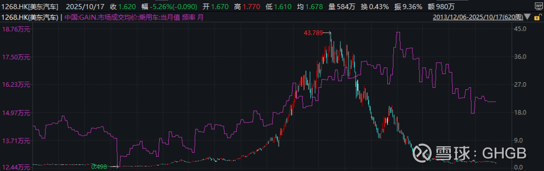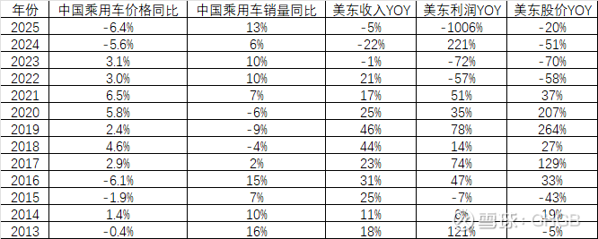 美东股价的走熊,对应的正是2015-2016年和2024-2025年的汽车零售价格下降时期,而这段时间乘用车的销量都大增。
