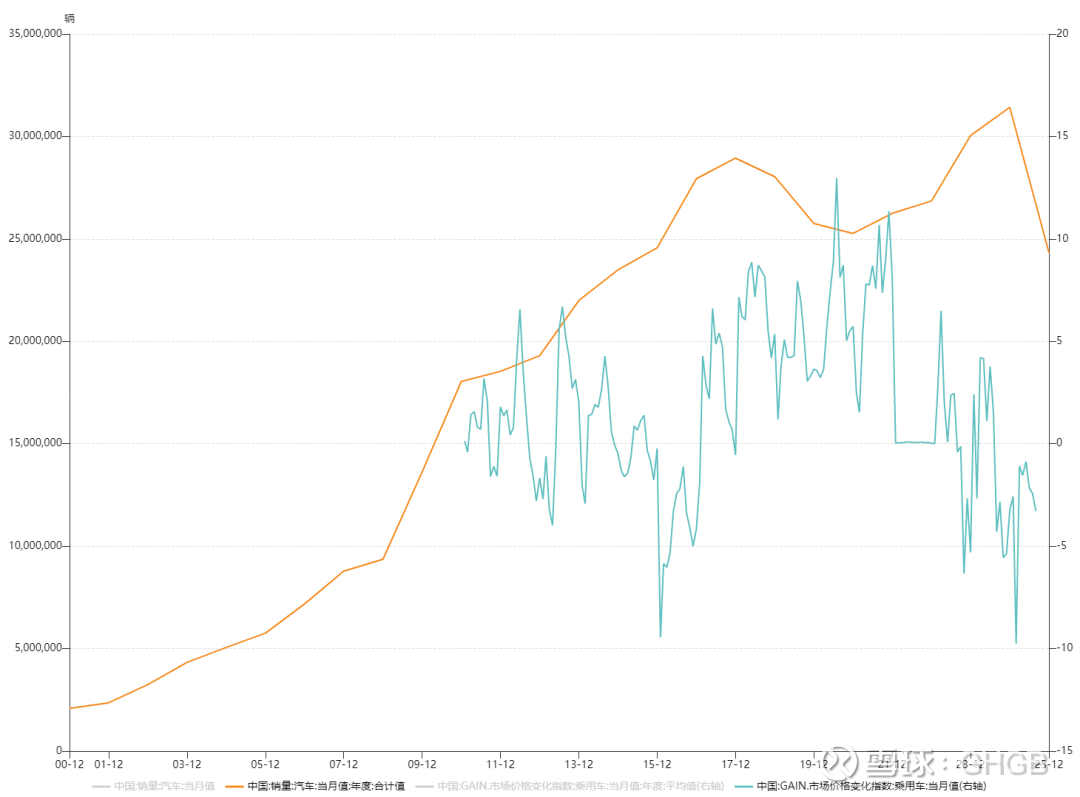 而如今,乘用车价格倒挂,4S店暴雷退市。2025年均价同比下降6%,销量冲击3000万,但美东高点跌去95%。