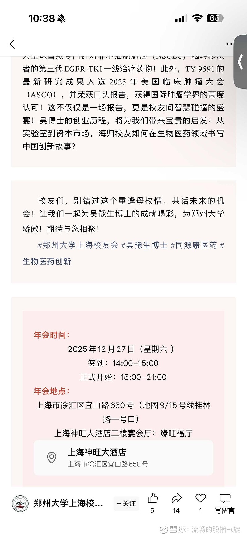 吴董要带着研究成果在校友会公布了!下周cde就会有消息了