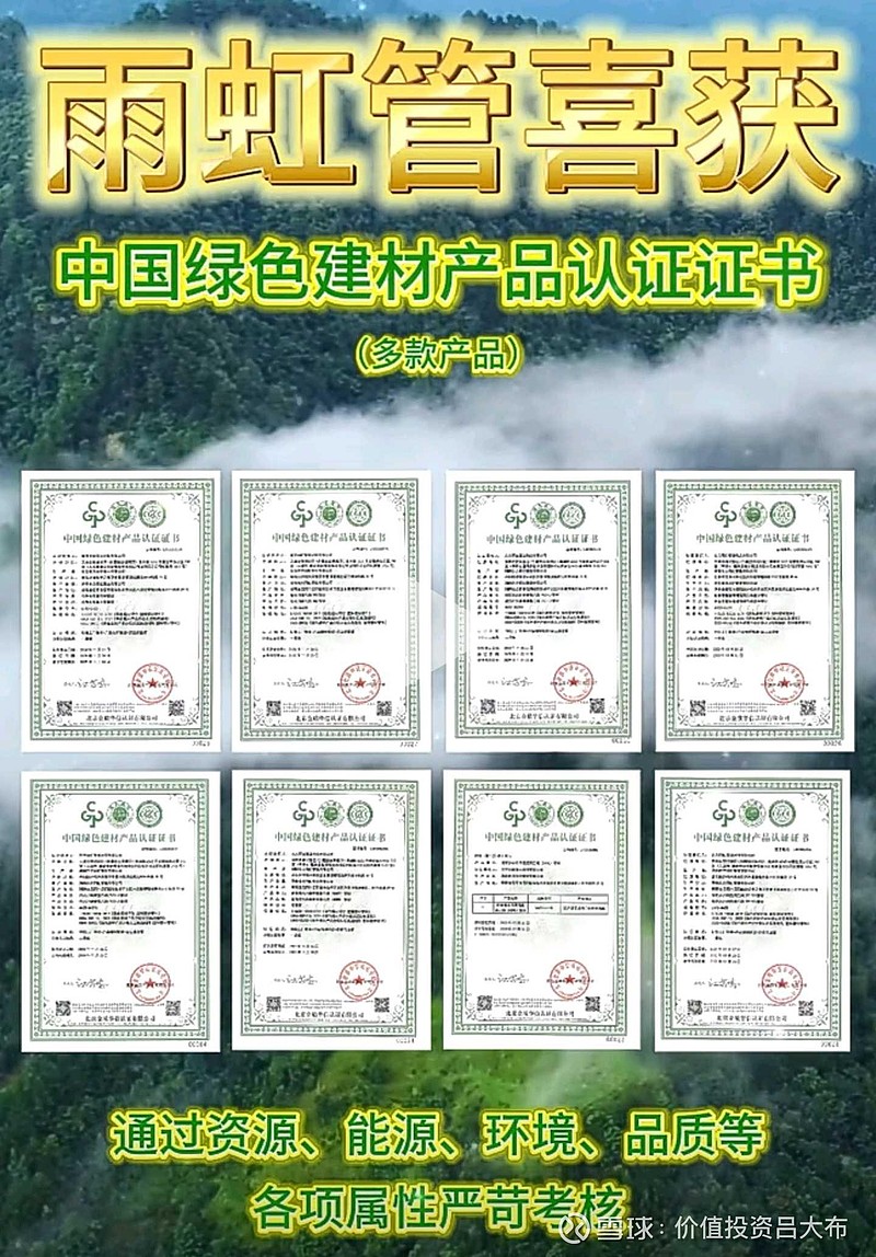$东方雨虹(SZ002271)$ 东方雨虹管业再添权威认证,多款产品斩获「中国绿色建材产品认证证书」,有望为5万亿地下管网改造工程提质增效。历经资源、能源、环境、品质等严苛考核,以绿色硬核实力,筑牢管道工程品质防线。