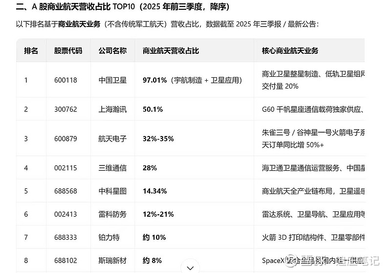 $上海瀚讯(SZ300762)$ 要说逻辑,咱就说商业航天业务占比,溜溜,有几个比瀚讯高的。业绩亏损这事儿,也溜溜,有几个不亏的。但是26年业绩确定性,或者说随着卫星上天特别是千帆卫星上天,确定性比瀚讯高的有哪些?继续坚定持有