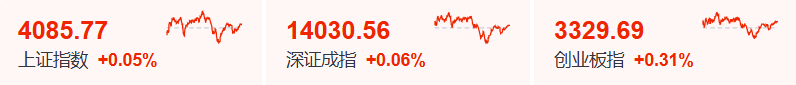 截至收盘,上证指数涨0.05%,深成指涨0.06%,创业板指涨0.31%。A股上涨2164家,下跌3188家。沪深两市成交2.85万亿元,较上个交易日增加400亿元。