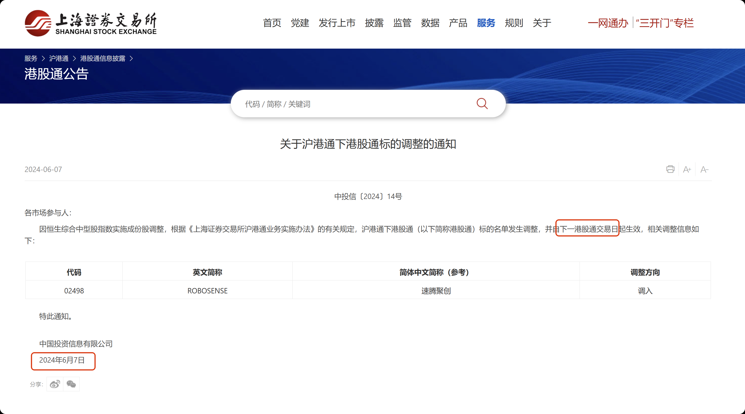 速腾聚创2024年1月5日上市,上市首日超百亿市值。在恒指公司3月31日“季度快速纳入”的检讨中符合标准,纳入恒生综指。5月17日恒指公司宣布。6月7日被沪深交易所宣布入通,6月11日正式入通。